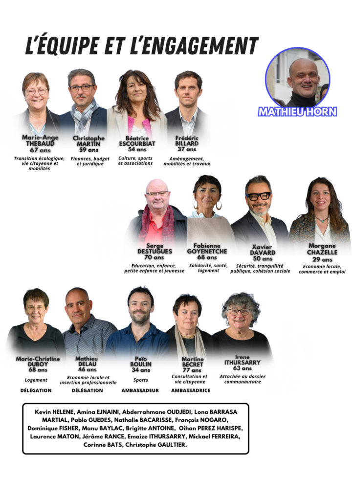 Notre ambition est claire : remettre l’humain au cœur de l’action municipale, valoriser ce qui fonctionne déjà, réparer ce qui s’est fragilisé et imaginer ensemble l’avenir du Boucau.